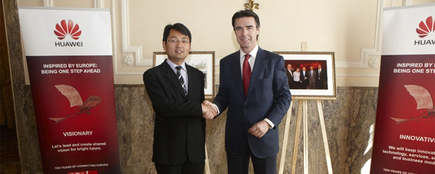 "China: inversiones en Europa y España": estudio de la consultora Deloitte que analiza la evolución y perspectivas de las inversiones chinas en el exterior, con capítulos específicos dedicados a Europa y España. (En la imagen, el ministro español de Industria con el responsable de Huawei en España, en 2012).